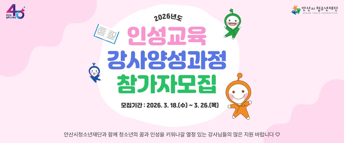 [제2026-22호](재)안산시청소년재단 신규 위탁용역강사(경기한국어랭귀지스쿨) 최종합격자 결정공고