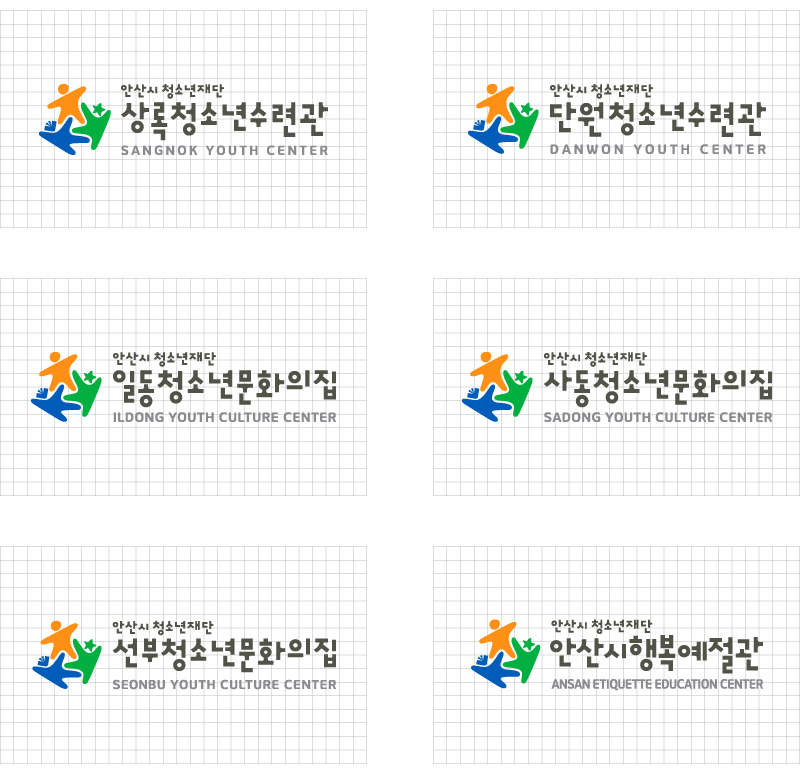 전용색상은 심벌마크, 로고타입과 함께 안산시청소년재단 이미지의 중요한 요소 중 하나로서 심벌마크의 색상표시나 인쇄물, 사인물 등 각종 매체에 폭 넓게 사용되어 안산시청소년재단의 이미지 형성에 중요한 역할을 한다.